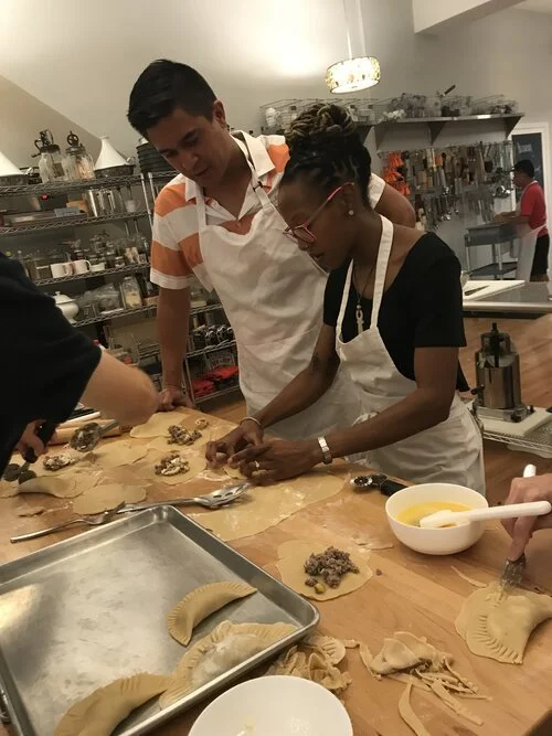 Discover the joy of cooking in a warm and comfortable setting where questions are encouraged and learning is a collaborative experience. Our curriculum is designed to make cooking approachable for beginners through basic kitchen foundational skills, while also delving into the complex and exciting realm of global cuisines and techniques for those seeking a challenge. We are passionate about sharing our knowledge and making the culinary world accessible to learners of all skill levels.